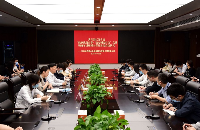 5月14日,蘇墾農發(fā)組織觀(guān)看共青團江蘇省委“綻放戰役青春堅定制度自信”宣講暨青年講師團全省行活動(dòng)啟動(dòng)儀式。公司駐寧子公司、總部團員青年共60人參加。公司黨委委員、工會(huì )主席倪志愿出席觀(guān)摩會(huì )并講話(huà)。