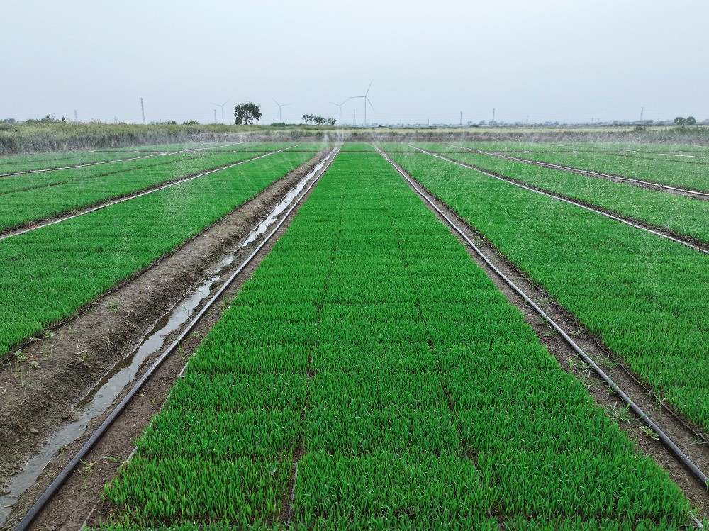 端午時(shí)節,蘇墾農發(fā)東辛分公司托管基地的水稻秧田生機勃勃。今年,托管基地1.2萬(wàn)畝水稻全部推廣微噴灌育秧技術(shù),實(shí)現技術(shù)全覆蓋,標志著(zhù)傳統水稻育秧向節水高效模式的跨越。